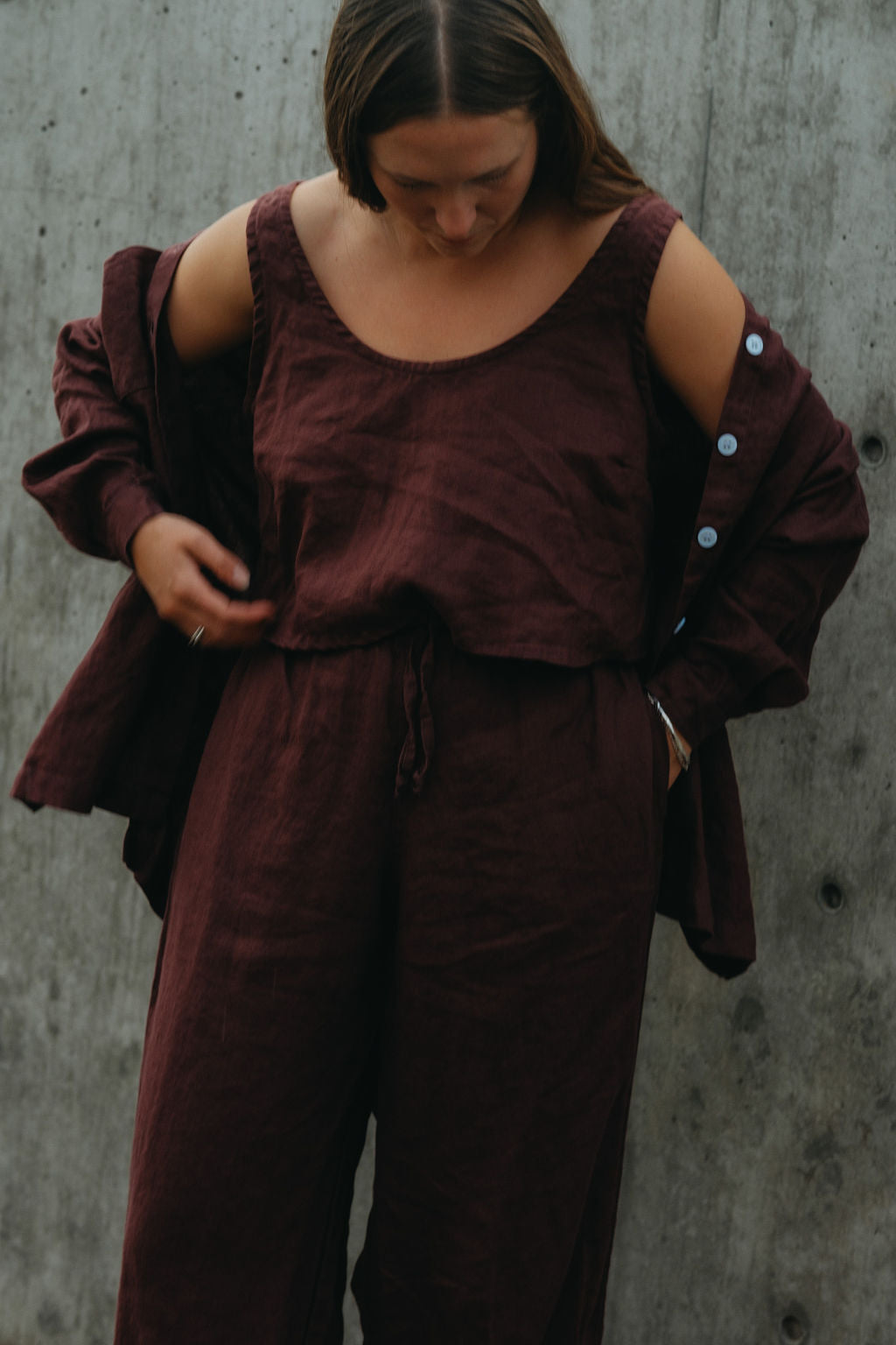 The linen pants of our dreams — easy, elevated, and endlessly wearable. The August Pant features a high-rise elastic waistband with drawstring, deep pockets, and a wide, loose leg with a gentle barrel shape. Thoughtfully designed to be your daily uniform.