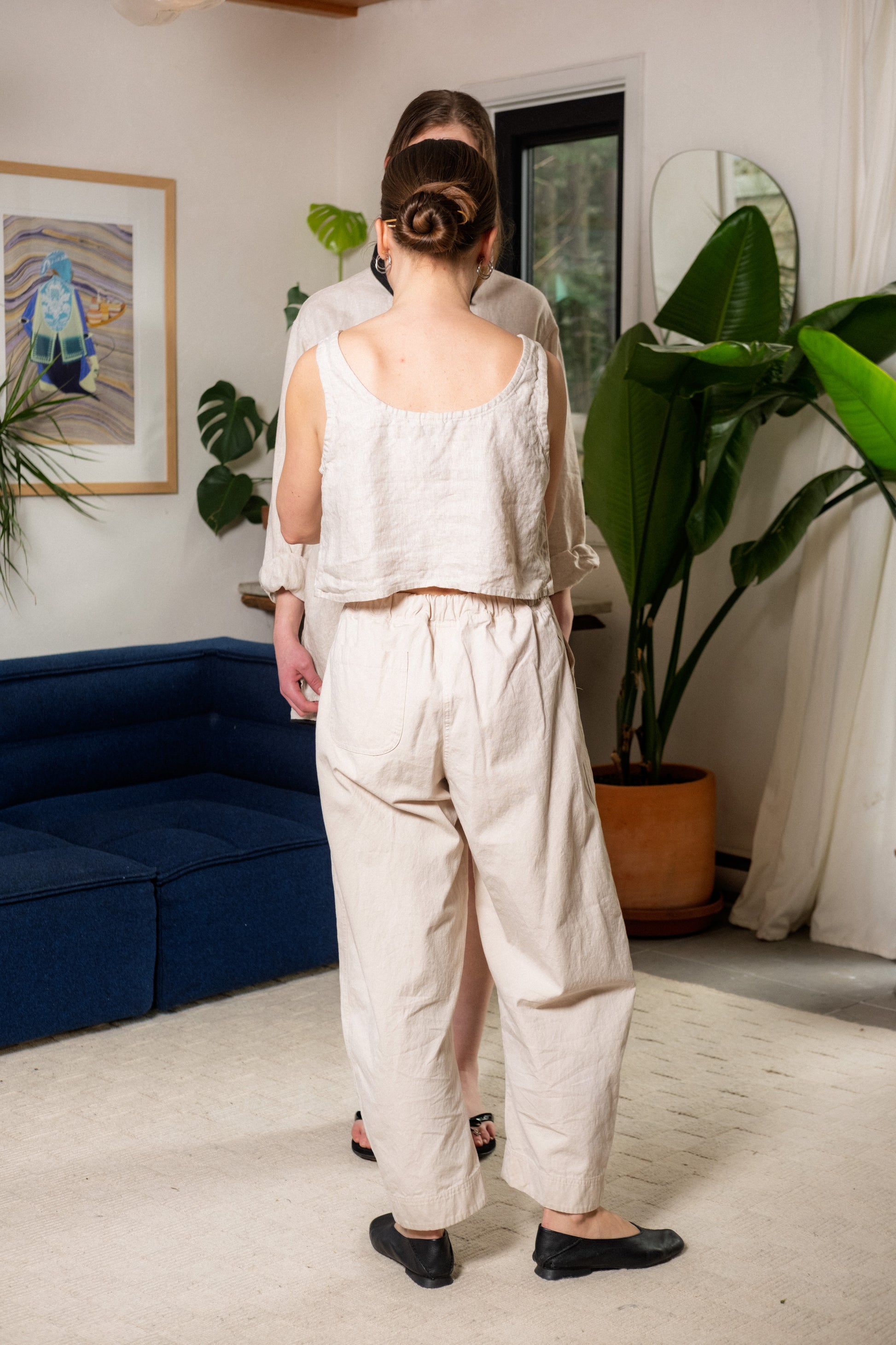 The Mila Tank features a twin scoop neckline in both the front and back, with straps wide enough to comfortably accommodate a bra. Designed with a gently fitted silhouette, it offers subtle shaping through the bust and torso while remaining breathable and easy to wear.