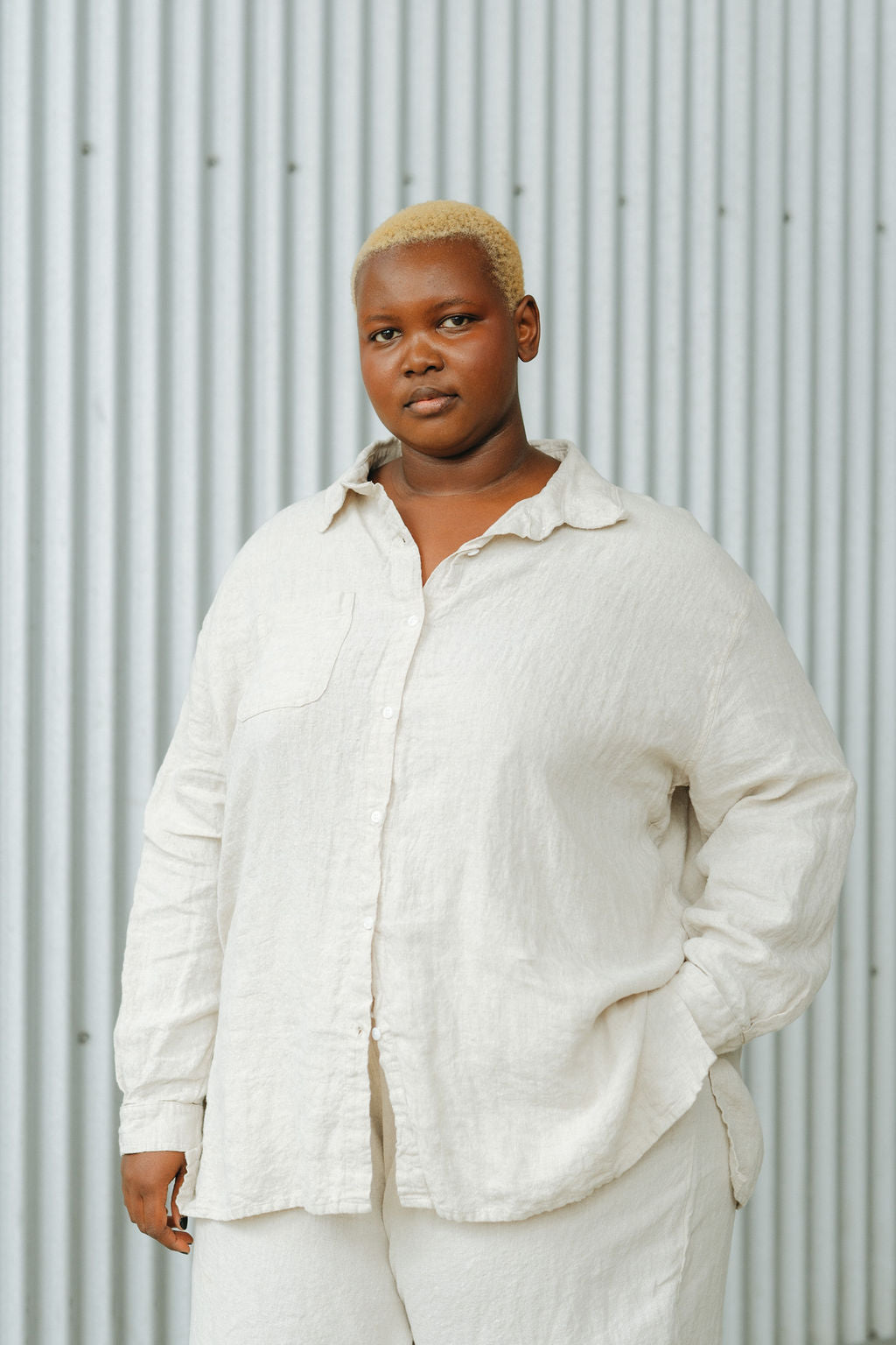 I received my Lloyd in 'Cocoa' a couple weeks ago and have not been able to stop wearing it! It is just the most special, perfect shirt. The fabric is lovely and wears well without ironing after washing ;) I love the side vents and the oversized-but-not-huge fit. I am so happy I invested in this piece that I will wear for years to come!