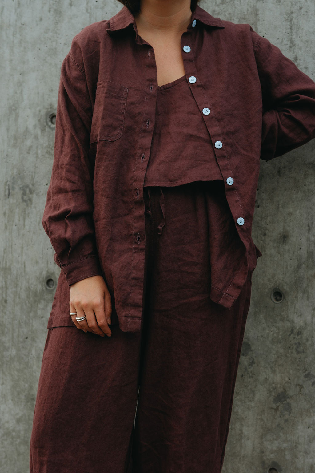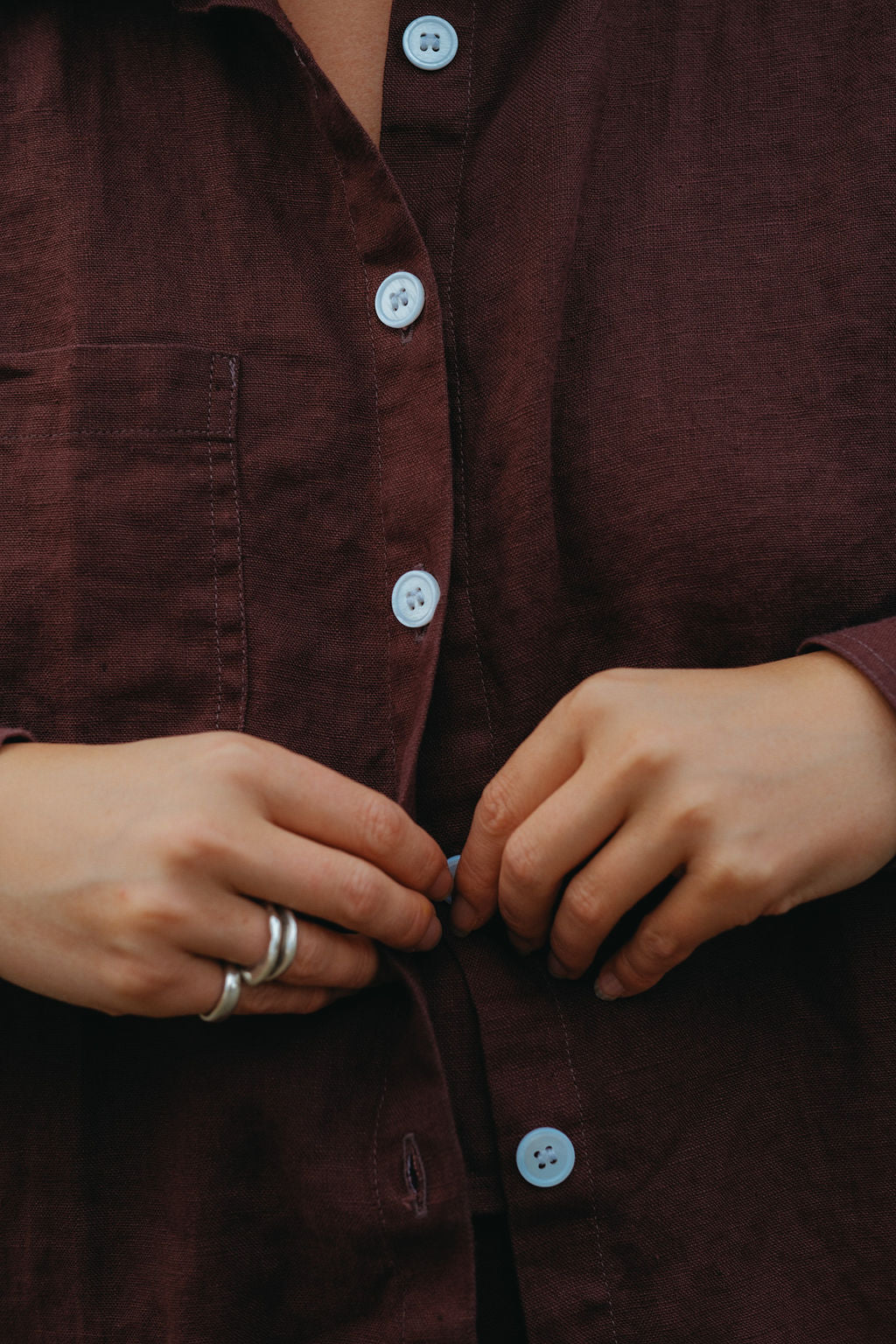 An oversized button-up with thoughtful tailoring and timeless design. The Lloyd Top features a classic collar, narrow button cuffs, and a split hem for ease of movement. Its relaxed, structured silhouette makes it an everyday essential — equally effortless worn open over a tee or buttoned up on its own.