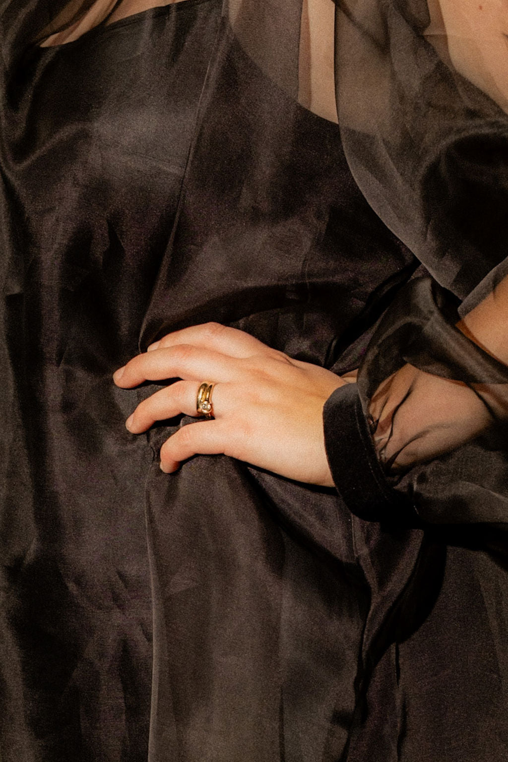 A special reinterpretation of our Mini Olive Dress, this edition is made from 100% silk organza — a beautifully sheer, airy fabric that feels both ethereal and modern. We’ve updated the design with rich 100% cotton velvet accents at the cuffs, neckline, and hem, adding depth, structure, and a luxurious holiday finish.